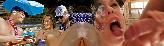 French teen Evy Sky has a very super-naughty anal three way on the beach