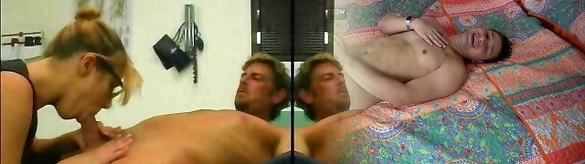 Dudes facialize hoe in glasses after giving her deep double penetration