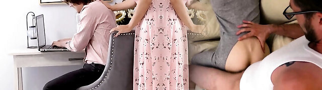 Petite stepdaughter licks her hot stepmother's cunt and gargles her stepbrother's humungous cock!