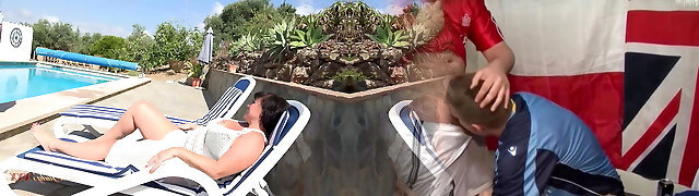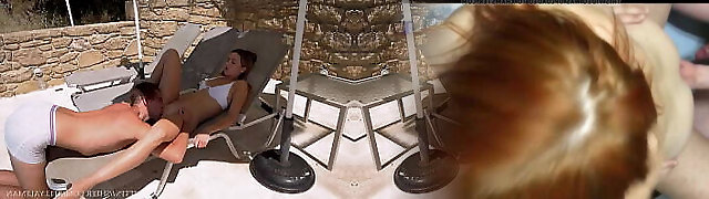 Licking Wet Poon Around Swimming Pool On The Sunbed 4K