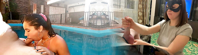 Blowjob and Fucky-fucky in Pool, Double Cumshot - Amateur Homemade
