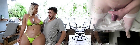 AuntJudysXXX - 64yo Huge-boobed Mature GILF Mrs. Linda Bangs Her Gardener by the Pool