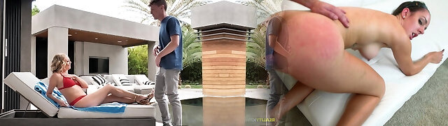 Naughty outdoors fucking by the pool with nasty MILF Elle McRae