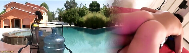 Poolboy and the bikini girl have blistering hot anal intercourse