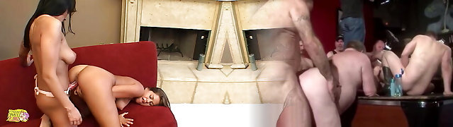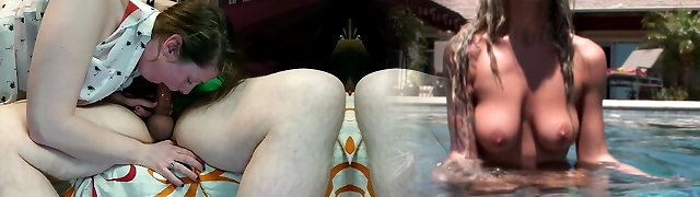 A naughty game of pool gets interrupted for g/g lovemaking with two smoking hot blondes