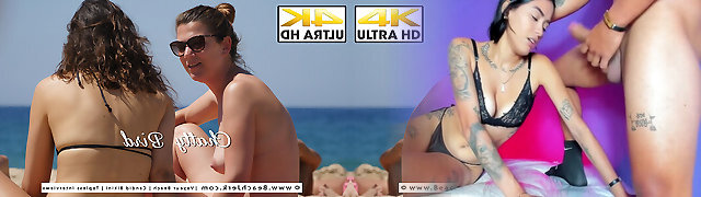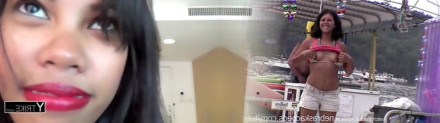A smoking hot black-haired hotty in a bikini gets interviewed and slammed hard
