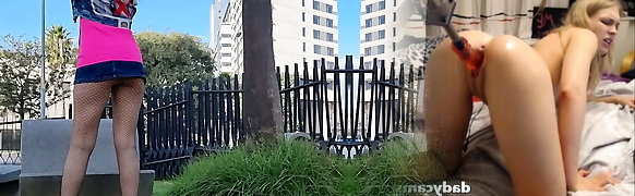 Curvy girl smoking and opening legs outdoors – teen in high stilettos