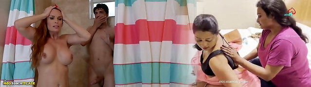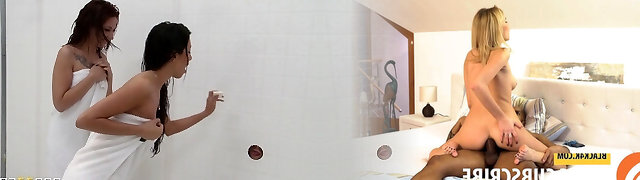 Samara and Bony get to touch and suck each other's muffs while their stepfather is in the douche. Part 1