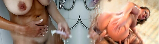 My hot milf wife with big natural cupcakes lets me film her taking a shower and shaving her vulva.