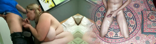 Busty Cougar pisses sitting in the toilet while her dirty mouth is occupied by her stepsons cock.