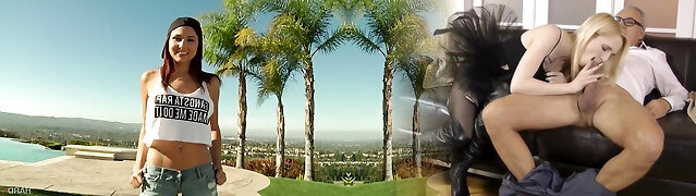 2 old man plows the sexy school girly 18yo without condom and big cum on small body