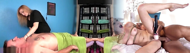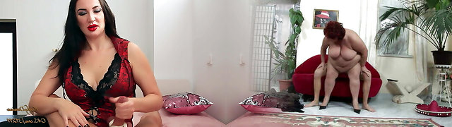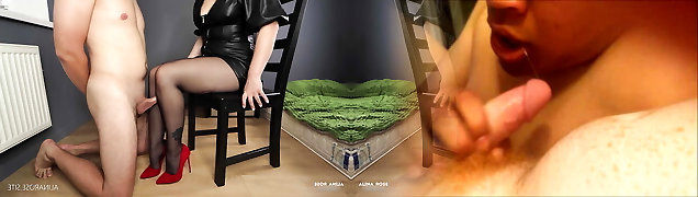 Filthy Busty Redhead Has Fun With a Submissive Chained Guy, Kicking His Balls And Teasing His Man-meat