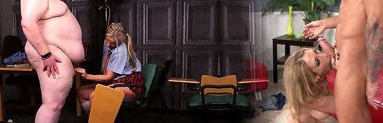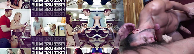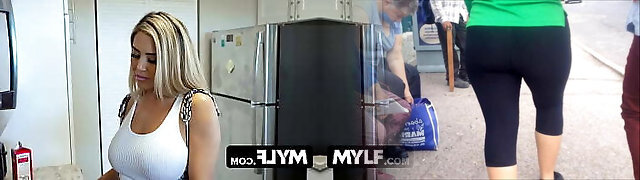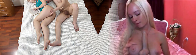 Beautiful Blonde Stepmom In Shorts Plays With Her Stepsons Big Rigid Cock While Watching Scary Movie