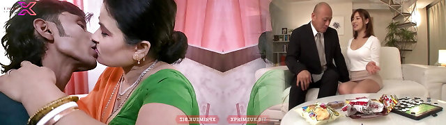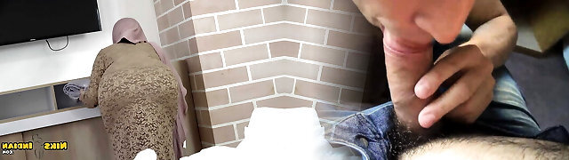 Tamil MILF Stepmom Stuck Under Bed with white saree & black half-top, when she cleaning under couch then son-in-law fuck her