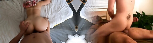 Lesbians with big butts in group sex, girlfriend gobbling ass and munches pussy, fisting in a deep hole.