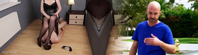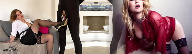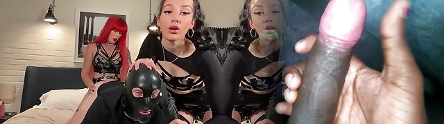 STRAP-ON SUCK foot fetish TICKLING latex servant Vinyl fetish pantyhose nylon worship - Arya Grander and mod Fetishaura