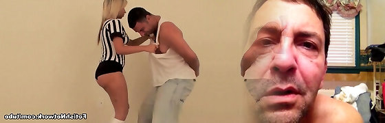 Every time she pulls on the balls, he squirts hot jism. TrippleH Firm Hessian testicle massage.