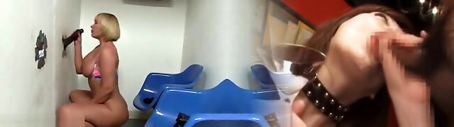 Slutty girl enjoys sucking and fucking ebony cocks at a gloryhole
