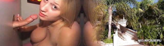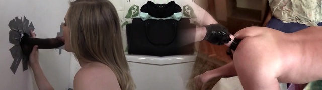 Gorgeous blondie with great boobs takes a fantastic black dick thru a glory hole