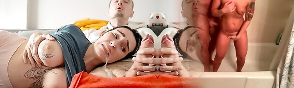why stepson fucks step-mom facehole? stepmommy risky oral creampie on couch - Kisscat