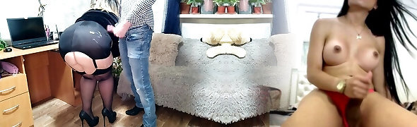Supah Hot Towheaded Secretary in Panythose and Lace Panties on High Heels gets banged by Big Dick Boss at Workplace for cum