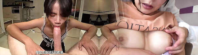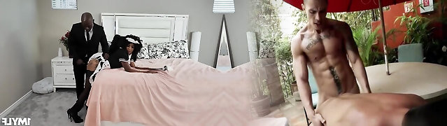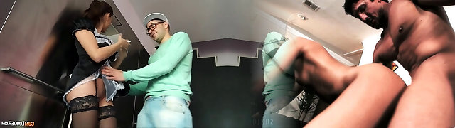 Nikki Nuts has a fantasy about maids, he asks Sissy to make his dream come true, dressing her up in a sexy stocking and milky open t-shirt.
