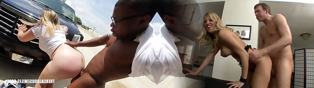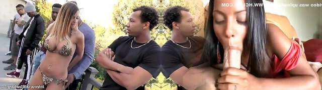 Too many black cocks attack busty Milf Brooklyn Pursue on the terrace
