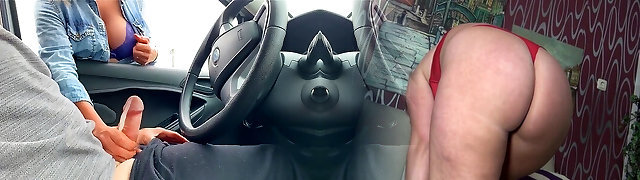 Chubby chick is pleasing a bbc neighbour with a hot blowjob and cock-squeezing pussy in the car