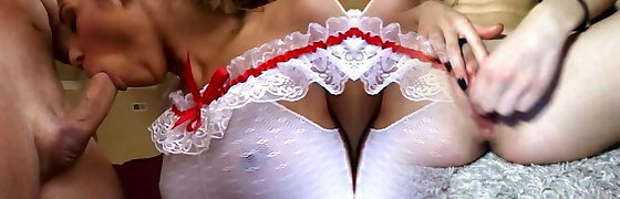 The mature and chesty mummy was treated to a 3 way, with 2 anxious colleagues packing her up and making her guzzle - an incredibly crazy and dis