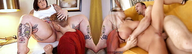 Mature Plus-size cheats on her husband with her stepson. Part 1. She likes to gargle his boner the most