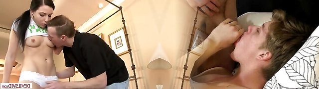 Barely-legal blonde babysitter with large tits Eliza Eves loves to jerk off the old men she works for!