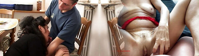 Stunning cougar with huge boobs gives solid blowjob to lucky neighbor