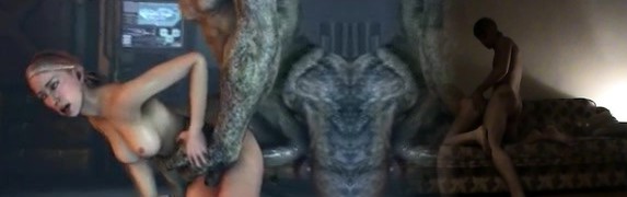 3D Cartoon Babe Fucked by Two Mutants
