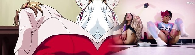 Naughty anime girls riding gigantic cocks