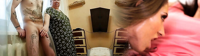 Loving Fantastic Step-mom Takes Care Of Her Stepson's Huge Weenie Pleasing It With Superb Blowie