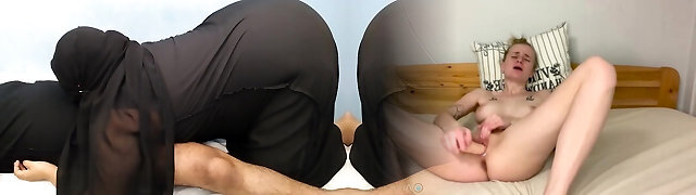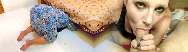 Arab MILF Stepmom stuck under bed in Eid day morning, While cleaning room, Then Stepson help her by donk fucking