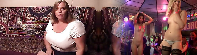 Round blonde woman with big tits, Selah Rain is having group sex during her b-day party