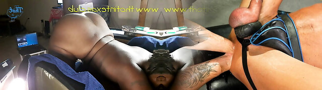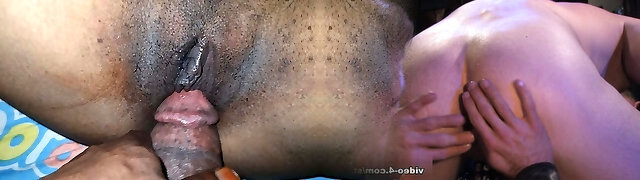 Rimmed black-haired sucks and gets BBC up in her tight pooper