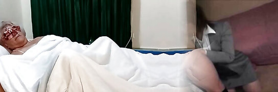 Catherine Can wearing nylon tights gets pummeled by a younger guy
