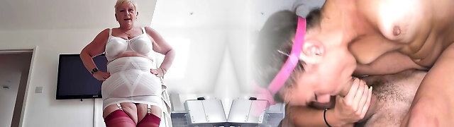 Banging busty old grandma from both finishes