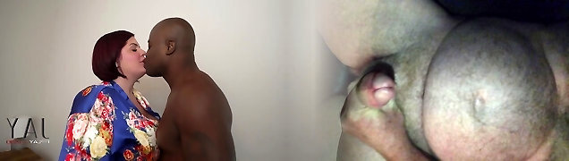 Milf fucks her black gardener, her chubby tits bounce joyfully back and forth