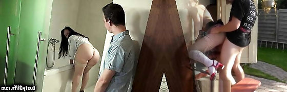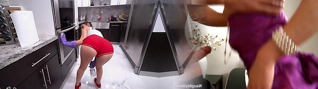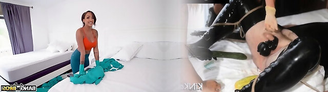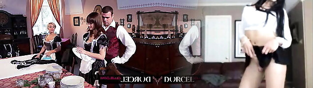 Nikki Nuts has a fantasy about maids, he asks Sissy to make his dream come true, dressing her up in a sexy stocking and milky open t-shirt.
