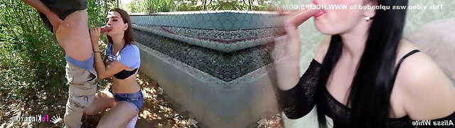My first video with sound! Deep blow-job in the woods & huge jizm load in my mouth - clothedpleasures