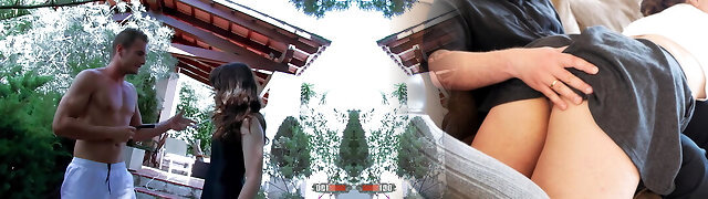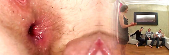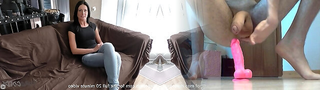 Happy and smiling German brunette milf masturbates her shaved cunt with sex toys in spunky pov filmed sequence