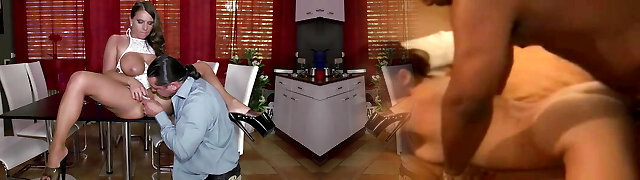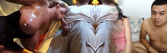 Before giving the ravishing blonde cougar a facial he uses her monstrous tits for titty fucking