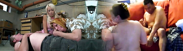 Curvaceous mother-in-law opens up her legs wide while peeing in a bucket after blowjob to her son-in-law
