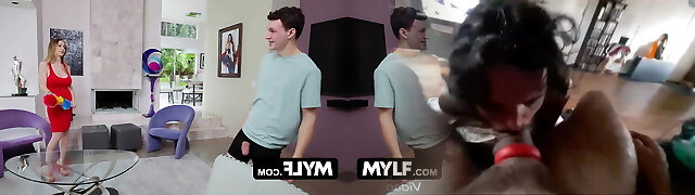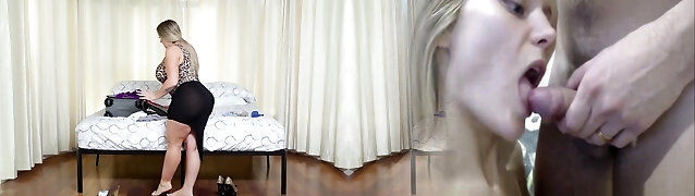 My mischievous stepmom sucks my cock while I'm conversing to my girlfriend on the phone. Part 2. I fuck her pussy