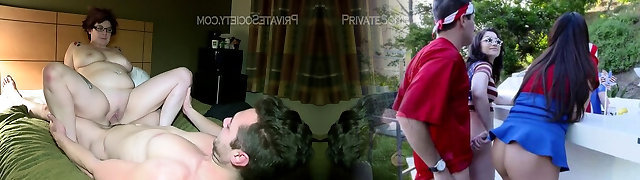 Pale redhead mormon teen Abbey Rain in her first interracial anal experience with a friend threesome