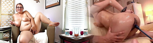 She wraps her humungous, natural jugs around Nacho'_s thick meat for a passionate titty plumb. The fleshy fun girl masturbates his dick between her thighs and milks out his cum by hand.
