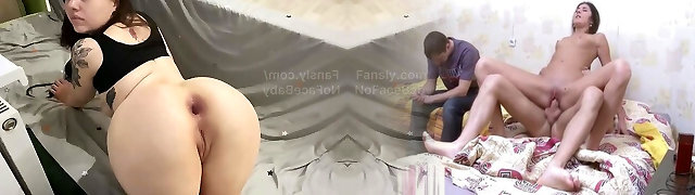 Close-up creampie and home sex of a Russian duo. A slender blonde with a gorgeous culo in short cut-offs and a hairy pussy fucks a fat old stud and gives a blowjob. Fetish.